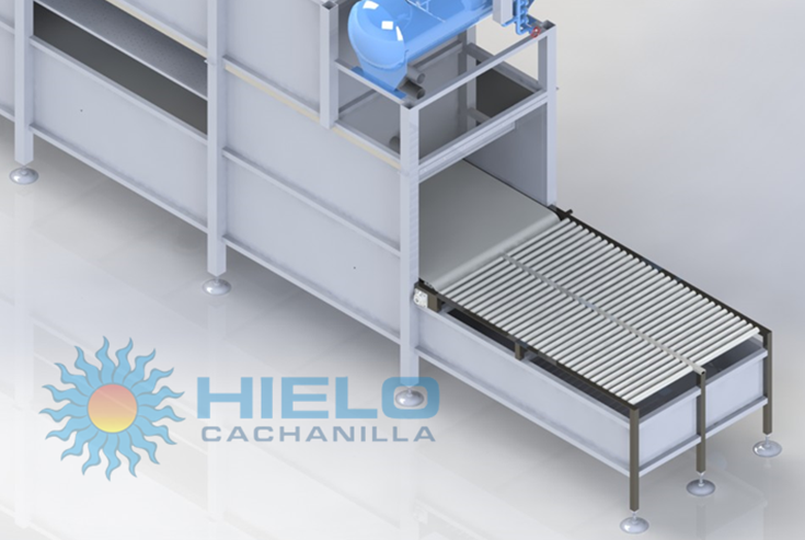 The band moves the product at a velocity determined by the thermal properties of the food as well as water and food temperature. Water usage is minimal, the water that previously absorbed the heat is recycled and recooled to make efficient cooling system.